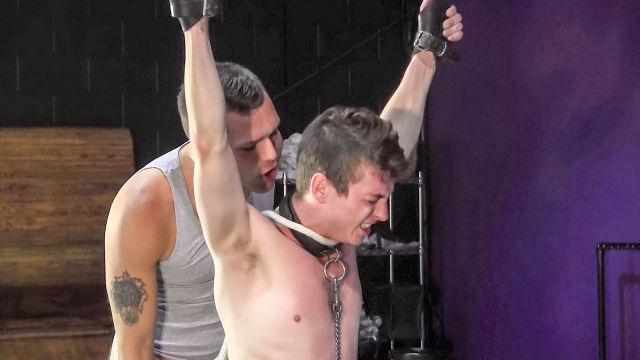 Damian has never had a metal hook up his hole before, but even that isn't enough to make his desperate penis go limp. Moved to the cross against the wall the boy is teased and slapped with the riding crop, the tool in his ass tugging while he lurches. Master Alec treats him to some more cock sucks, but soon he's experiencing the agony of the flogger against his bare back and rosy cheeks! Master is so hard, his dick twitching with the need for more pleasure, but will he surrender and make his boy cum, or just please himself?